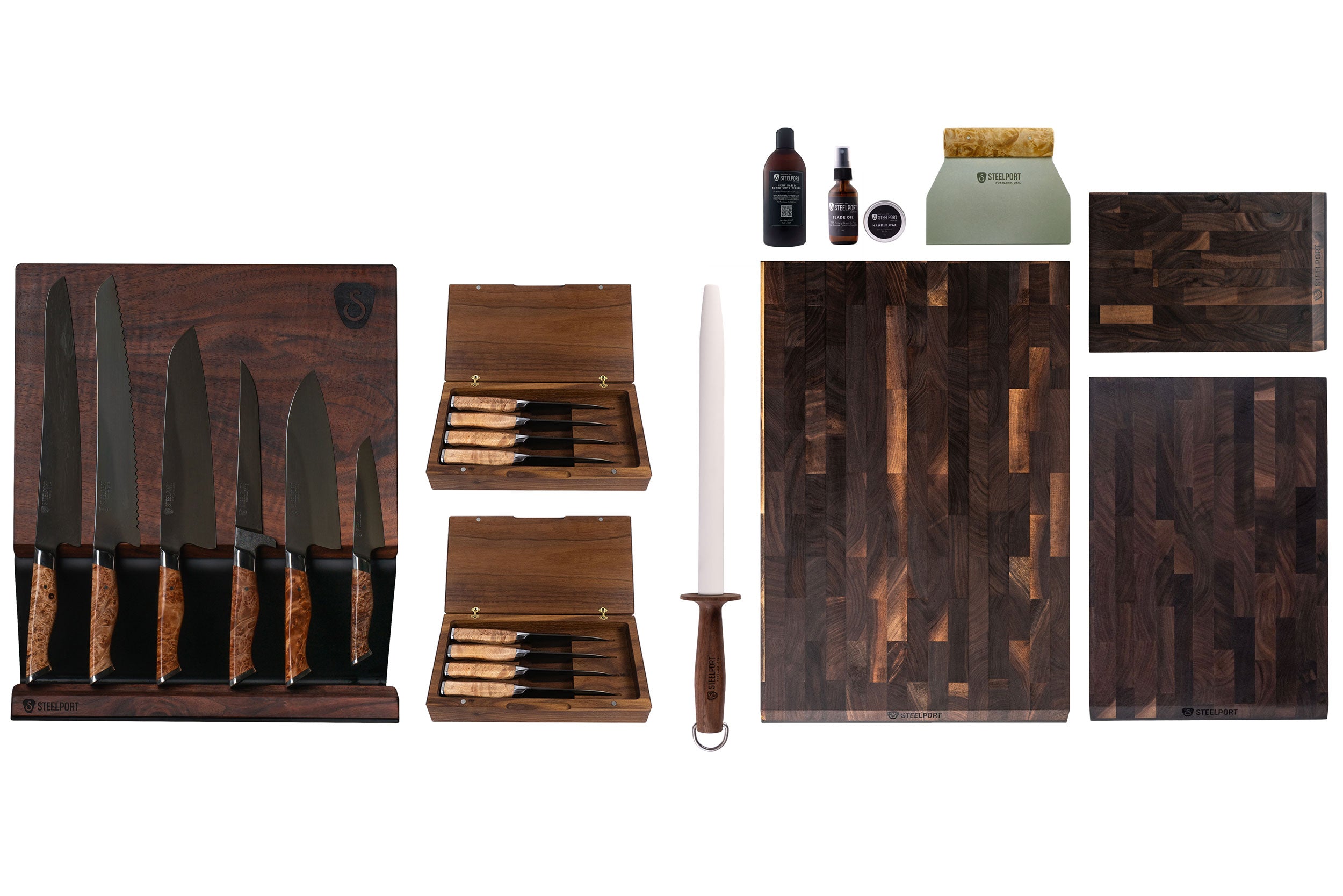 The STEELPORT Full Family Set brings together every essential tool for your kitchen, providing the ultimate in performance, craftsmanship, and versatility. Handcrafted in Portland, Oregon, from premium US-sourced materials, this collection represents STEELPORT’s unwavering commitment to Craftsmanship Without Compromise.